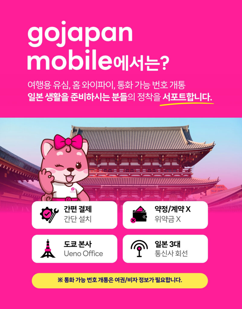 Go Japan Mobile(고재팬 모바일)은 한국에서 미리 일본 전화번호를 개통할 수 있는 통신 서비스입니다.