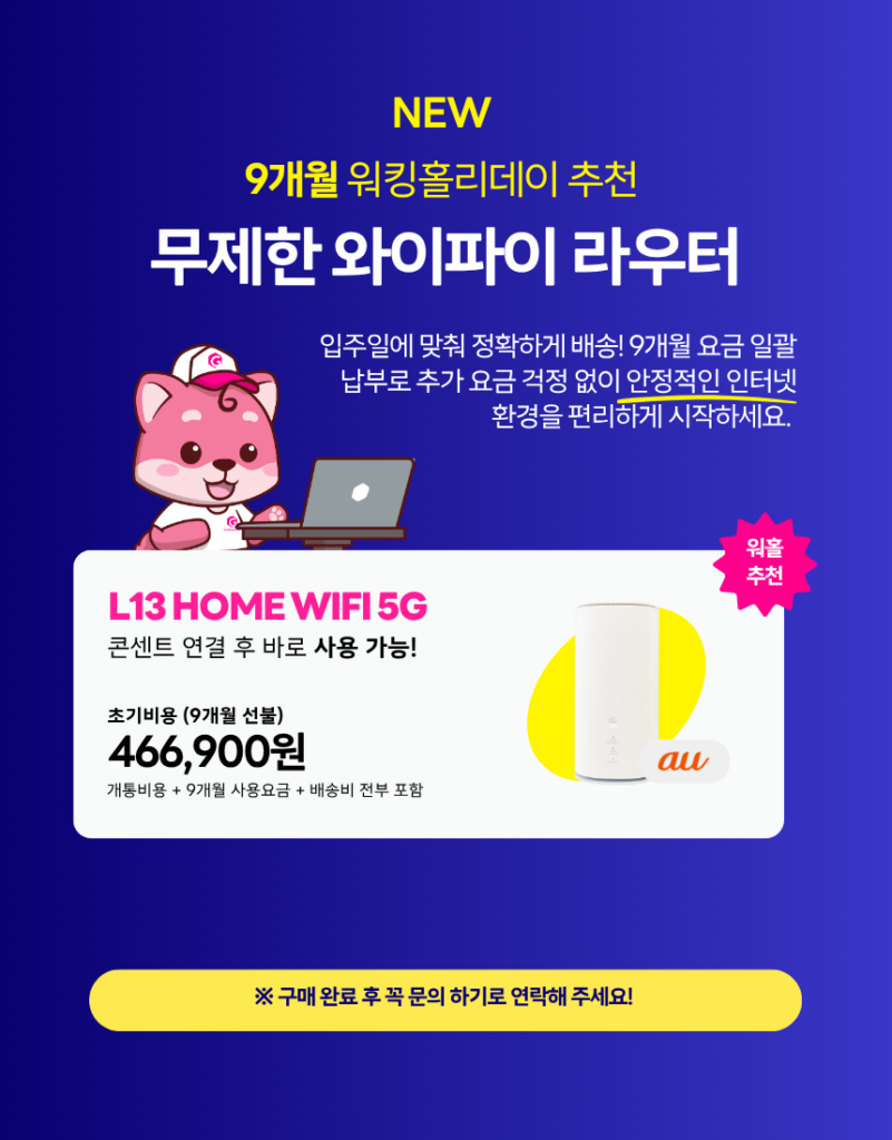 고재팬 모바일의 9개월 홈 와이파이 요금제는 다음과 같습니다.