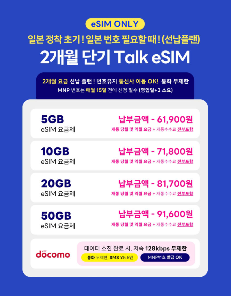 그러나 약정이나 위약금이 없어 언제든지 해지가 가능하며, 일본 입국 전에 핸드폰을 개통할 수 있다는 점에서 충분히 이용할 만한 가치는 있습니다.