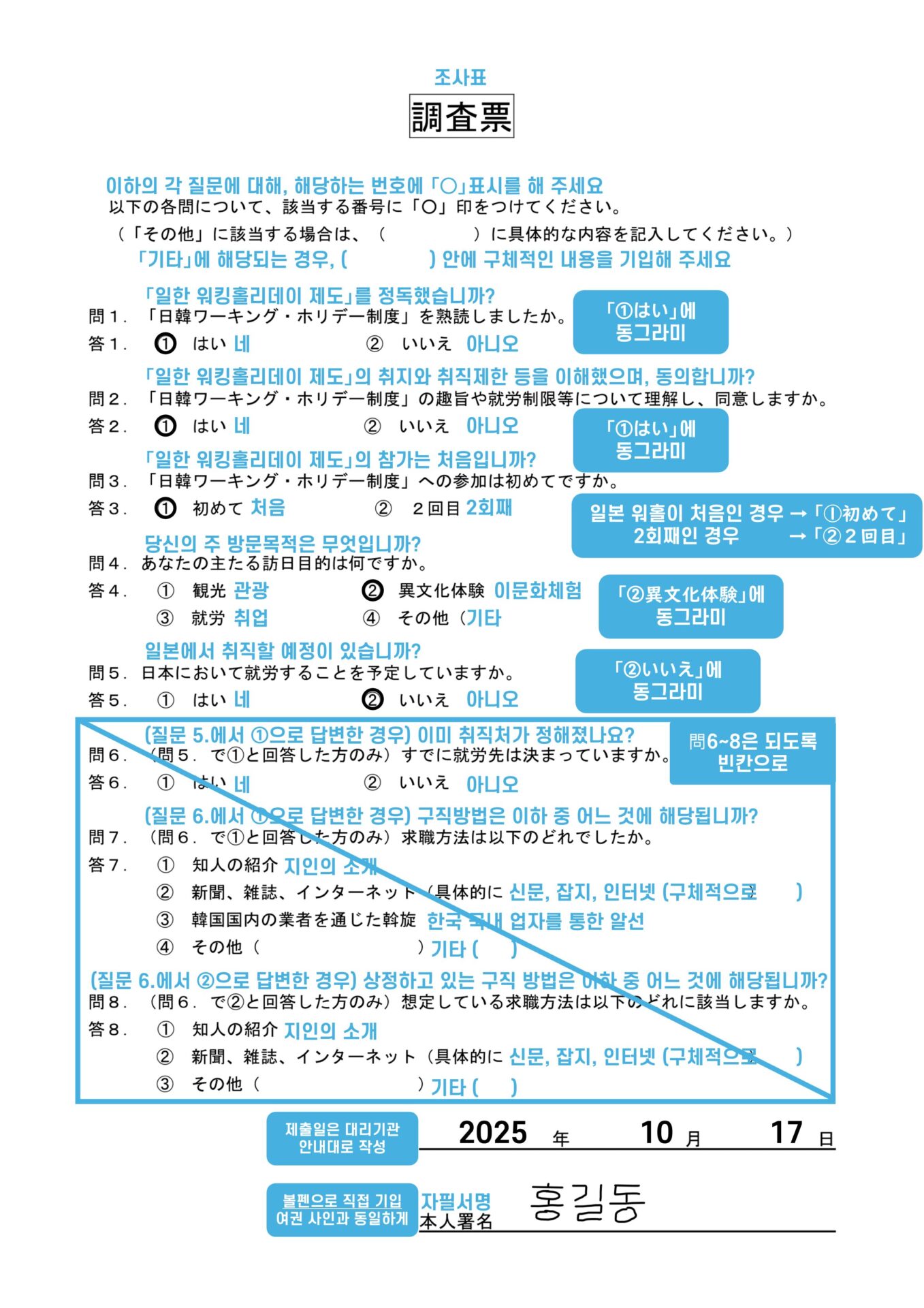 [2025 일본 워홀] 조사표 작성방법 | 양식 및 기입 방법 설명